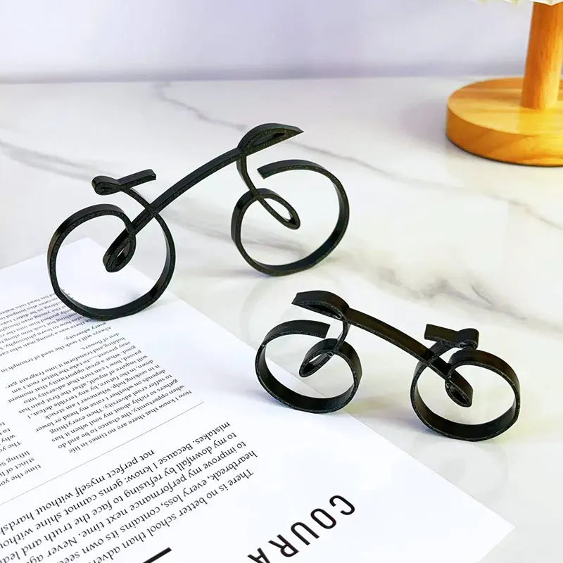 This abstract bicycle sculpture blends modern artistry with minimalist design. Crafted from sleek metal, it captures the motion of cycling in a stylish, decorative form — perfect for shelves, desks, or display cabinets.