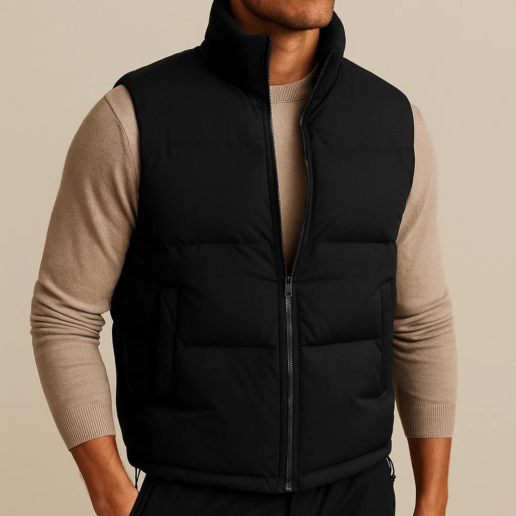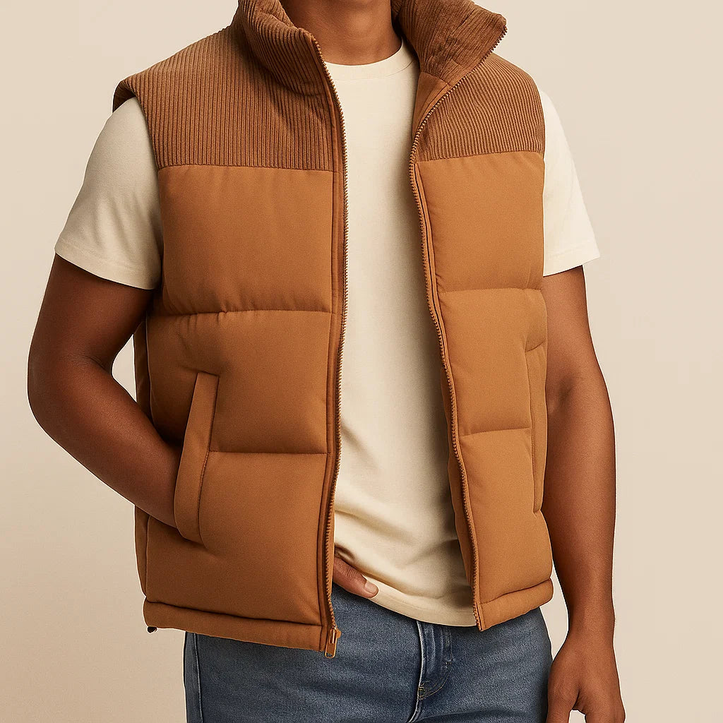 Crafted with a soft cotton-blend lining, it delivers breathable comfort while retaining warmth. The padded exterior and ribbed collar bring structure and refinement, making it a versatile layer for cool-weather styling. Offered in multiple colorways, it adapts seamlessly from casual wear to more polished looks.