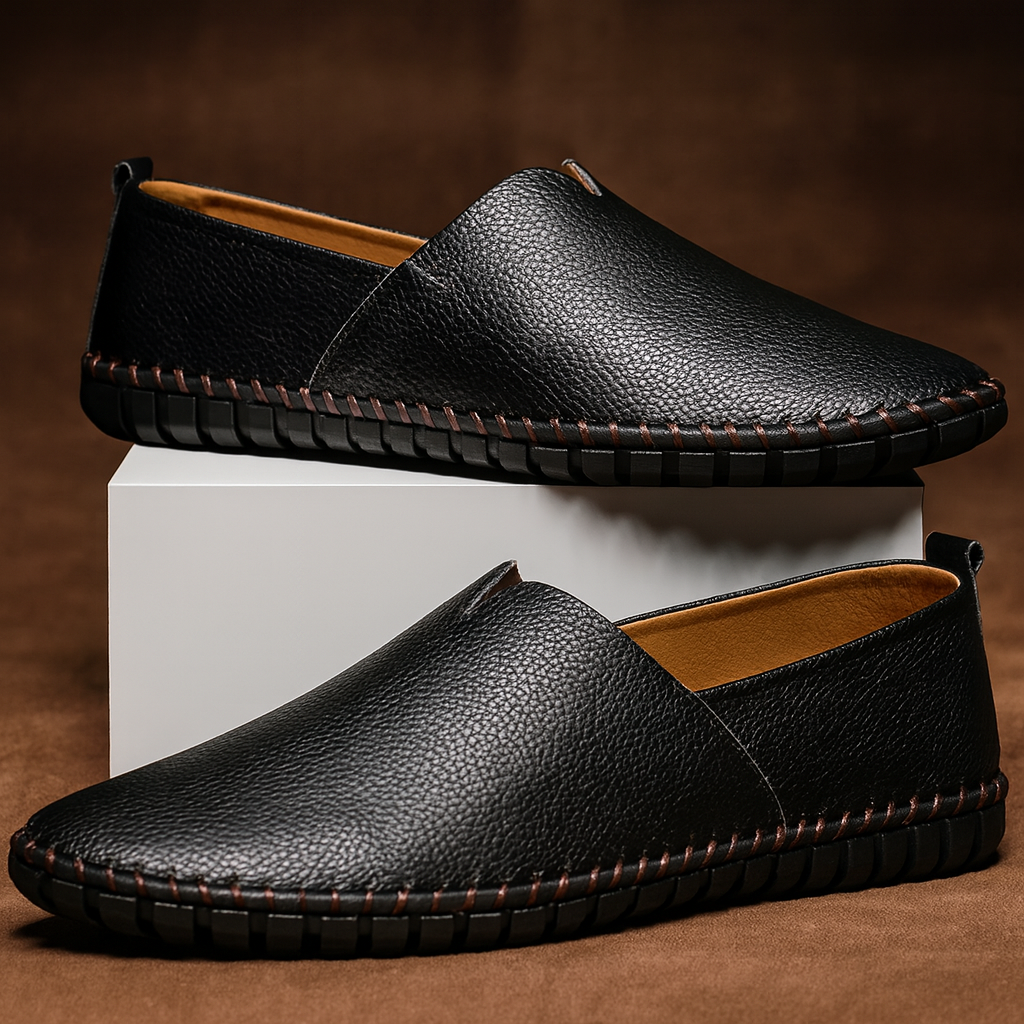 Crafted from supple leather with hand-stitched detailing, these slip-ons combine sophistication with everyday ease. Designed for comfort and versatility, they transition seamlessly from casual outings to refined settings.
