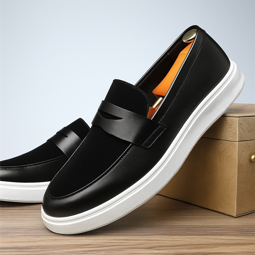 Designed with a sleek leather profile and contrasted by a crisp white sole, these loafers bring a sporty twist to a classic silhouette. Soft lining and a flexible build keep them comfortable, while their clean lines make them easy to pair with anything from tailored trousers to jeans.