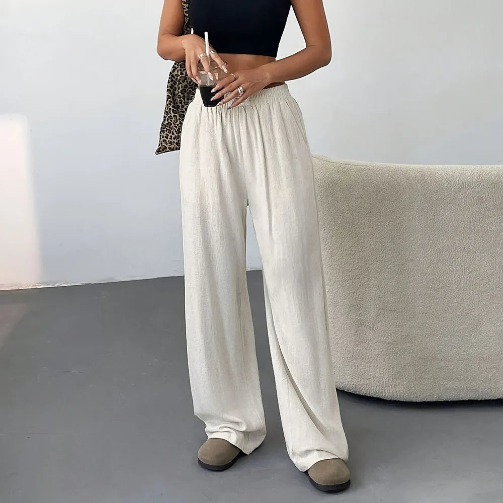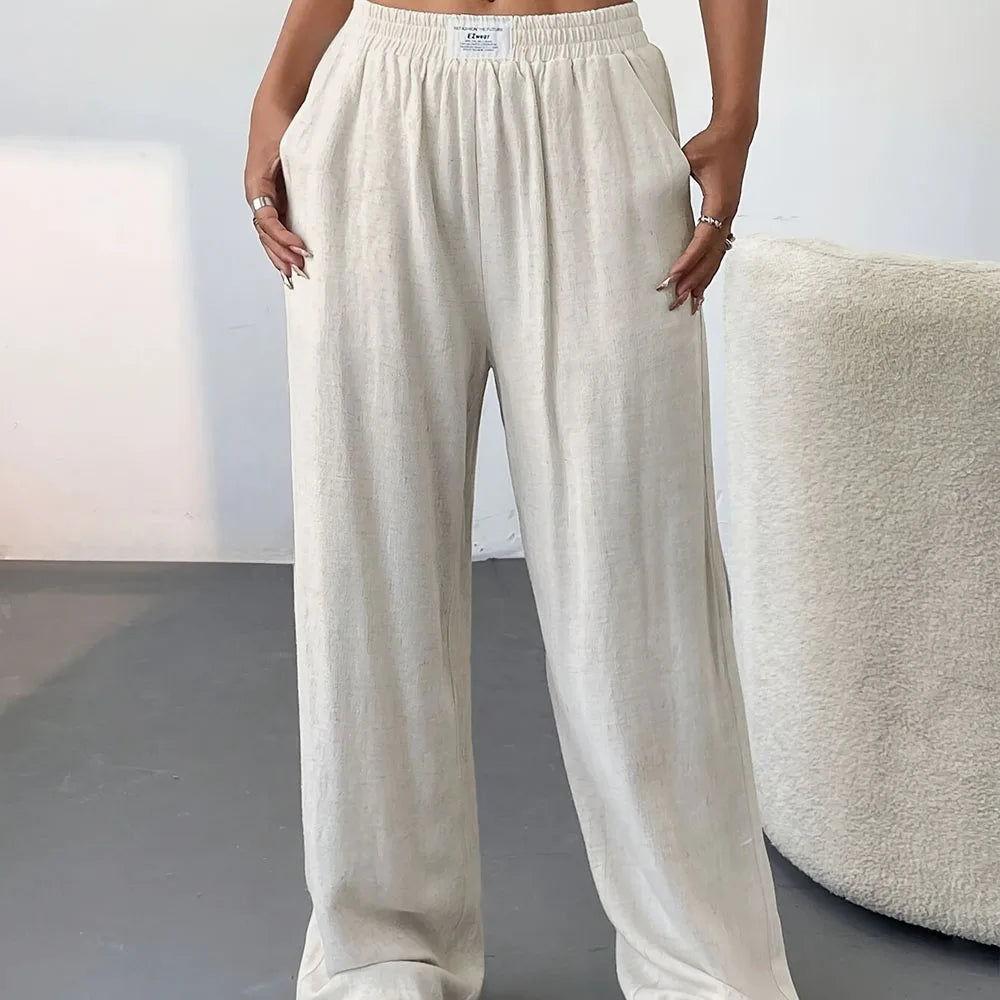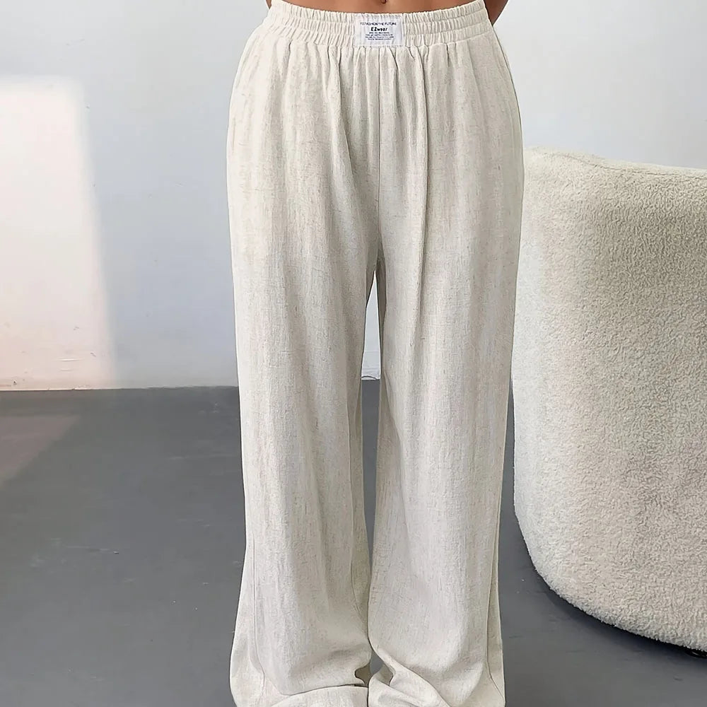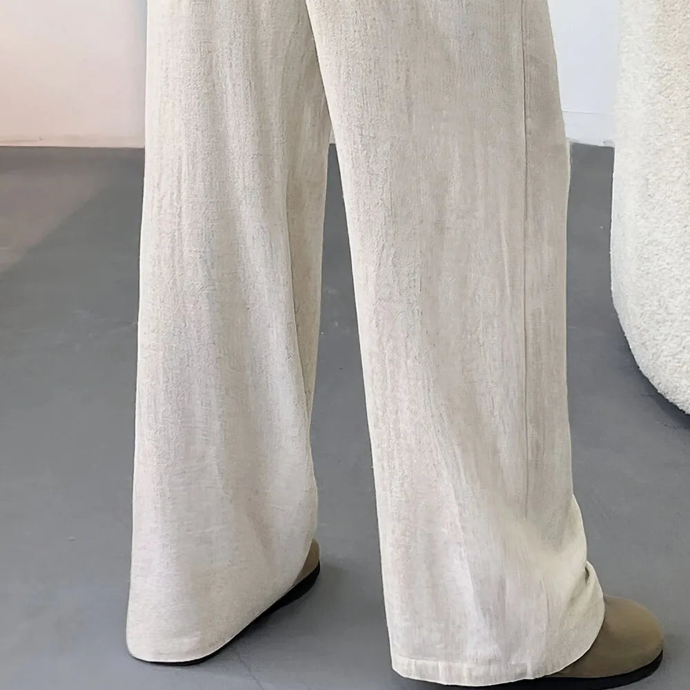 Lightweight linen pants with a relaxed fit, soft texture, and adjustable drawstring waist for effortless comfort and style in warm weather.