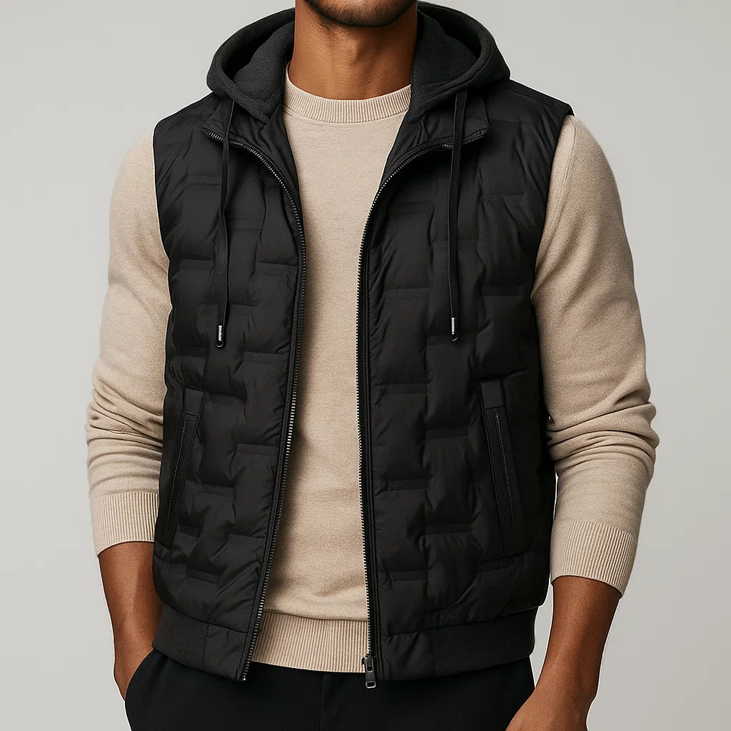 Designed for the shift in seasons, this hooded quilted vest provides just the right balance of warmth and ease. Its padded build and tailored cut make it an essential autumn layer, perfect for throwing over knits or long sleeves when the air turns crisp.