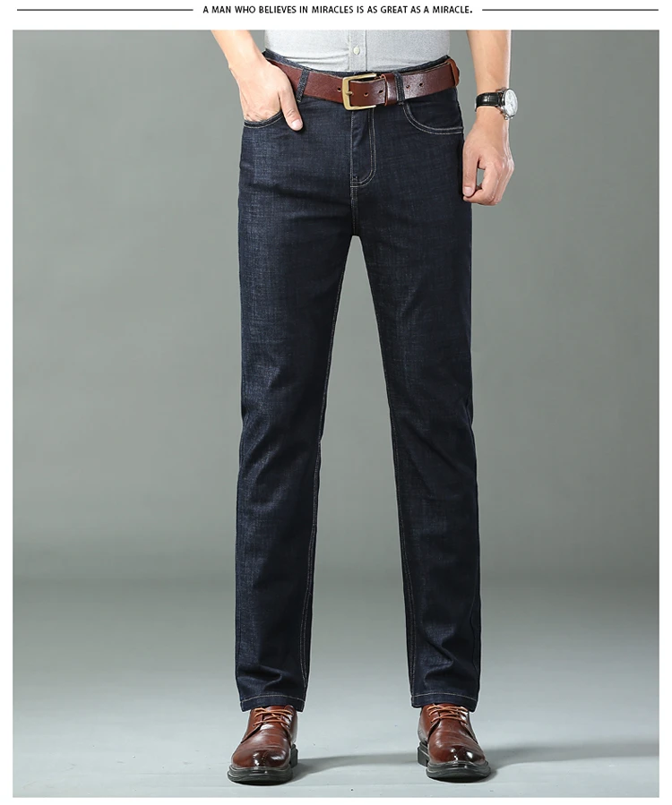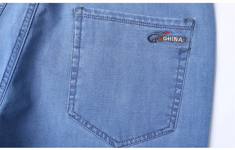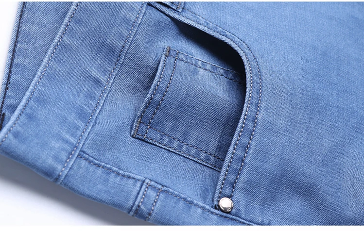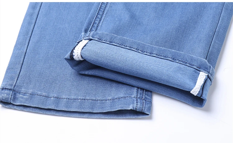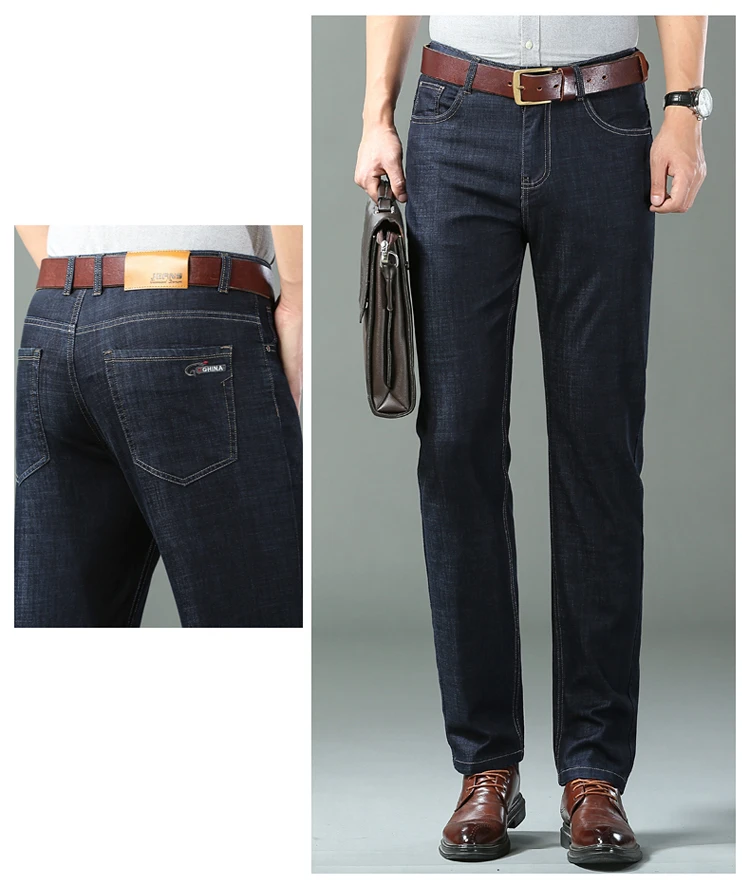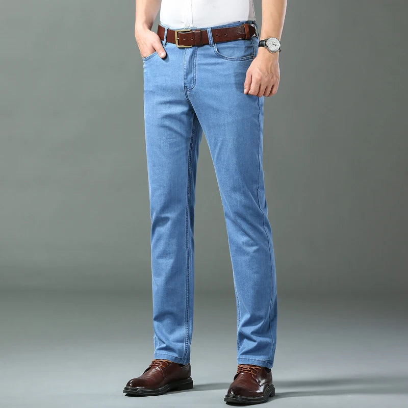 Spring/summer Thin Denim Straight Cotton Stretch Jeans Men Business Casual Cloth High Waist Ice Silk Lightweight Trousers